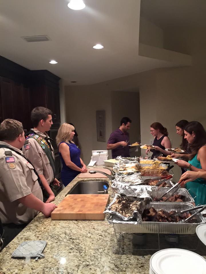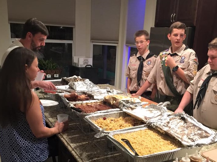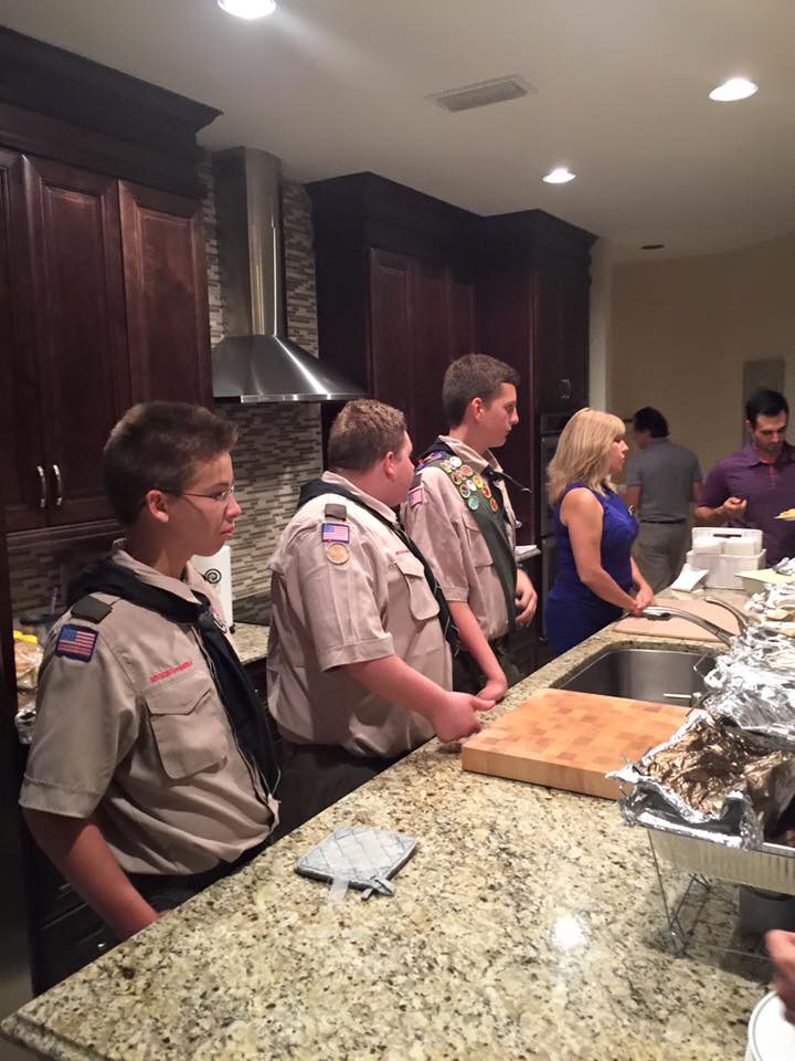 After just one year in existenance, our cooking team has come from winning chili cookoffs to being hired to cater a wedding recpeption. On October 24, 2015, the Troop 155 cooked for and served a private wedding recpeption for 50 particpants.